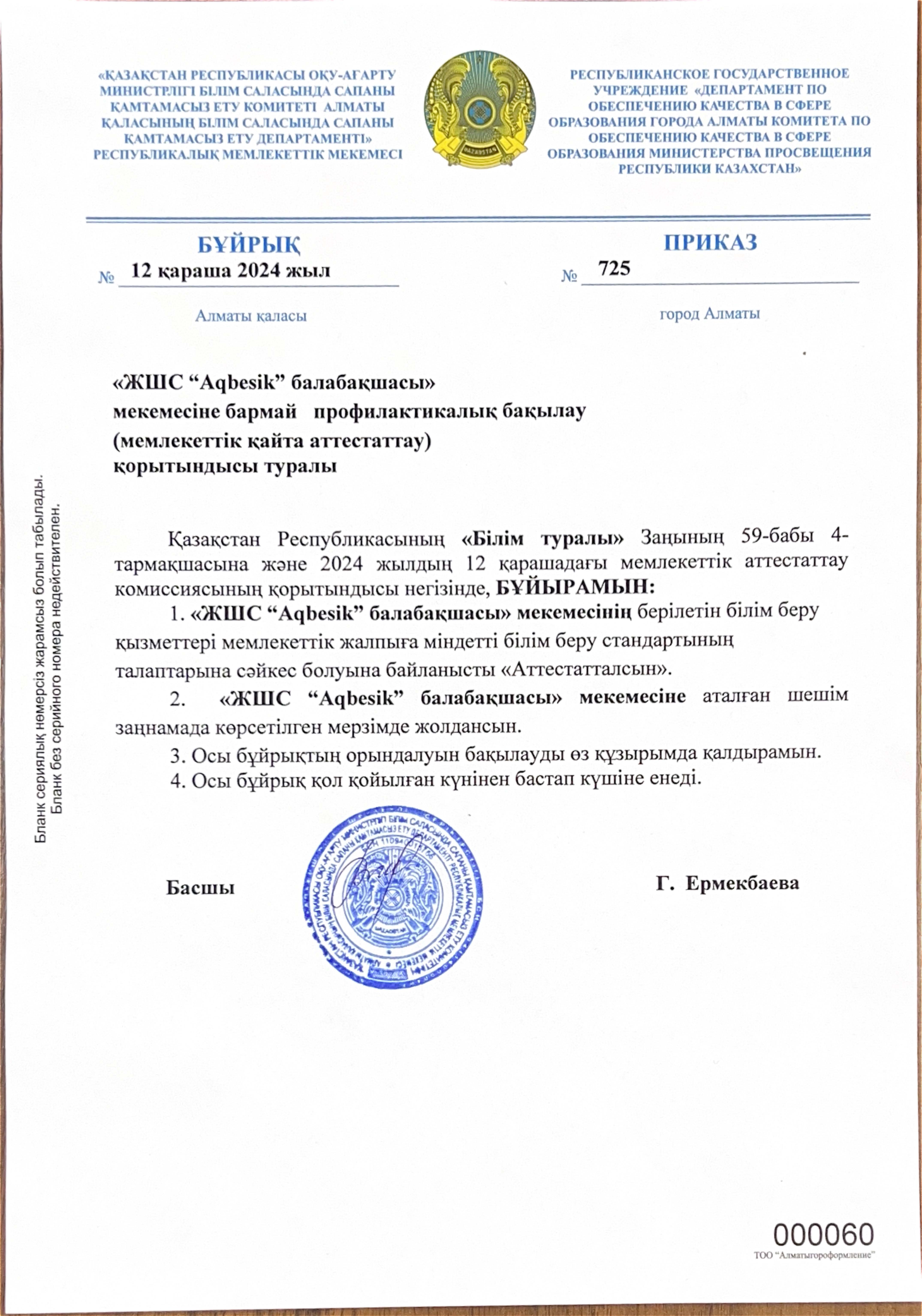 +77016542372 Директор ДС "Aqbesik" Касымова Айгуль Хатауовна